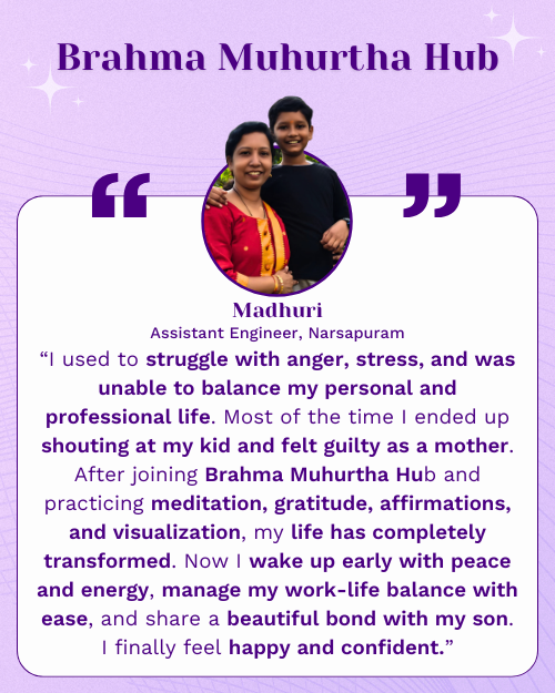 As a mother of two kids, I personally know how challenging it is to balance home, kids, and self-care. For years, I struggled with stress, sleepless nights, and feeling lost in daily responsibilities. But once I discovered the magic of Brahma Muhurtha, my life transformed completely.